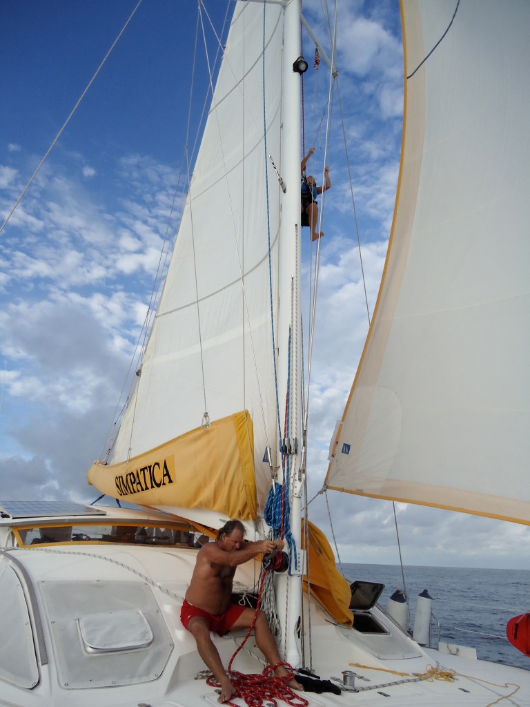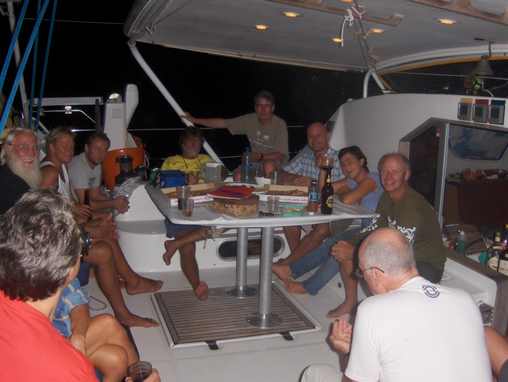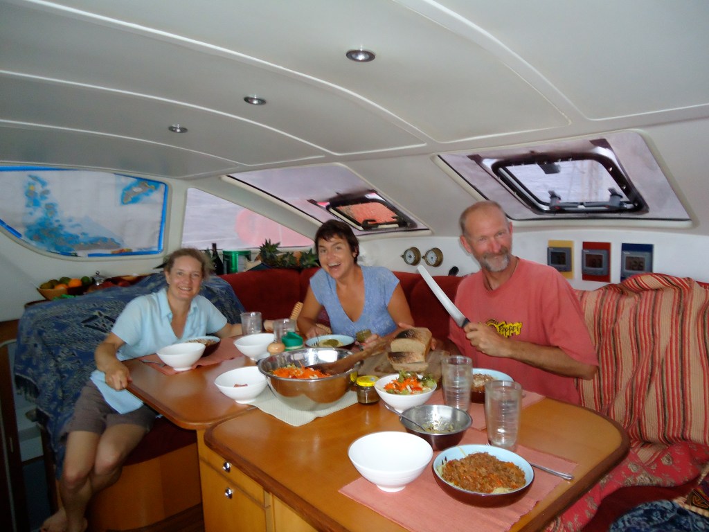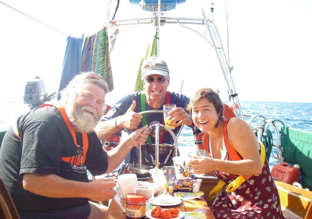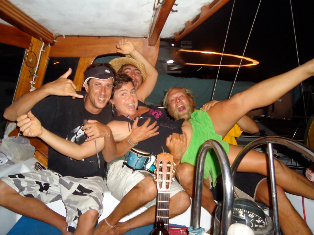 Crossing the equator with our paying crew, Cariño.